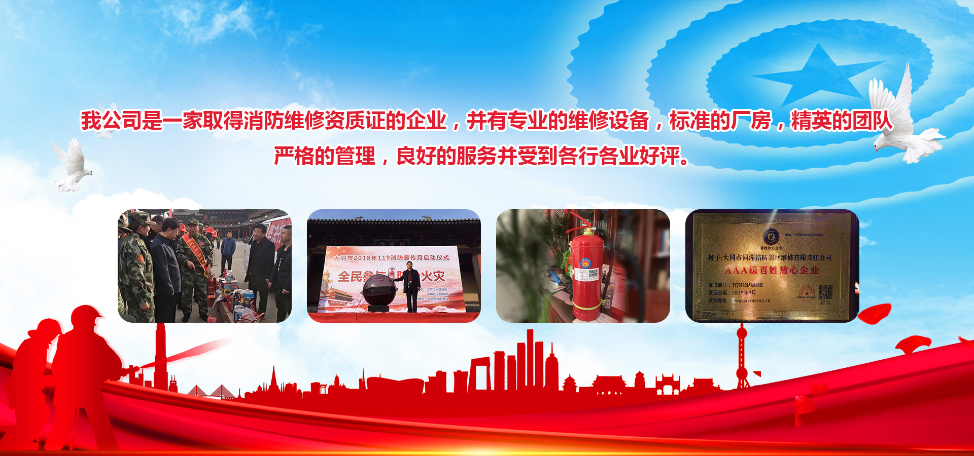 大同市同渾消防器材維修有限責(zé)任公司,位于大同市同泉路389號,始建于2000年,是公安部消防局定點銷售和維修的企業(yè),歷經(jīng)多年的創(chuàng)建、發(fā)展和拼搏,現(xiàn)有多家消防器材廠商供應(yīng)我公司,并有現(xiàn)代化維修設(shè)備,標(biāo)準(zhǔn)的廠房,嚴(yán)格的管理,優(yōu)良的設(shè)備,良好的服務(wù)并受到各行各業(yè)的好評。總經(jīng)理劉國玉嚴(yán)格管理,嚴(yán)格要求,精益求精,認(rèn)真負(fù)責(zé),帶領(lǐng)團(tuán)隊熱烈歡迎各界朋友顧客光臨。